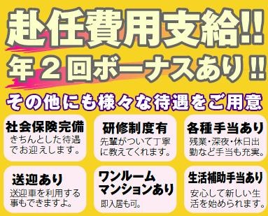 | 勤務先所在地 | 業務内容 (勤務時間) | 給与 (時給) | その他条件 | | 各務原市内 | ボルトの検査 (8:00~17:00) | \1000 | 車+交+初 | | | | | | | | | | | | | | | | | | | | | |